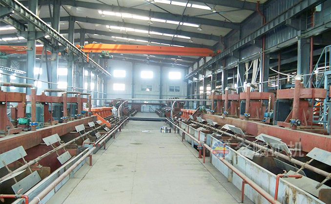 針對蒙古國此項目的具體礦石性質,我們采取了以下工藝流程:破碎采用三段 一閉路,設計采用兩個系列,每個系列為一段閉路磨礦分級。給礦粒度為0~12mm,產品細度-200目占70%,浮選精礦再磨產品粒度-325目占90%。一段磁選精礦再磨產品粒度-200目占85%。采用浮選+磁選的選別流程。原礦經浮選,浮選粗精礦再磨再選后得到銅精礦,浮選尾礦磁選后精礦再磨磁選得到鐵精礦。浮選采用一粗三掃三精流程;磁選采用一粗二精流程。