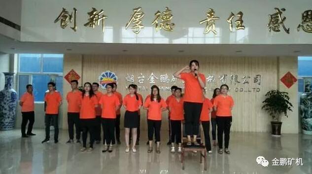 七月份的公眾承諾是為了讓大家以飽滿的熱情、激昂的斗志投入到接下來的工作中,首先由公司董事長于建環女士作六月份各部門的總結報告。 銷售各部門公眾承諾 倉儲物流中心公眾承諾 采購中心公眾承諾 技術中心公眾承諾 研究院公眾承諾 鉚焊車間公眾承諾 機加工車間公眾承諾 軍隊+家庭+學校這是金鵬一直秉承的企業文化,每月一次的公眾承諾不僅激勵著員工做好自己的工作,更讓我們以飽滿的熱情投入到工作當中去,有壓力就有動力! 金鵬集團今天的輝煌與你們的奉獻是分不開的,工人師傅不畏炎熱,憑借先進的加工設備,雄厚的技術力量,完善的檢測手段和嚴格的質量管理,制造出質優價廉、安全可靠的設備,暢銷世界各地。身在海外的安裝工人,不畏惡劣的氣候條件依然每天加班加點的工作,為的是更快的讓選礦廠建成投產,更早的為客戶創造效益,是你們的盡職盡責才換來金鵬今天的成就!
