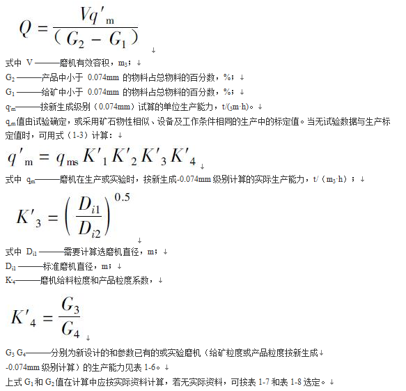 球磨機參數選擇和球磨機生產能力計算