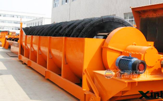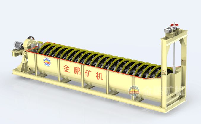 高堰式螺旋分級機采用將磨細后的礦漿從位于沉降區中部的進料口給入水槽,傾斜安裝的水槽下面是礦漿分級沉降區,螺旋低速轉動,對礦漿起攪拌作用,使細顆粒懸浮到上面,流到溢流堰處溢出。粗顆粒沉到槽底,由螺旋輸送到排料口作為返砂排出。溢流堰的位置高于螺旋軸下端的軸承中心,低于溢流端螺旋上緣。